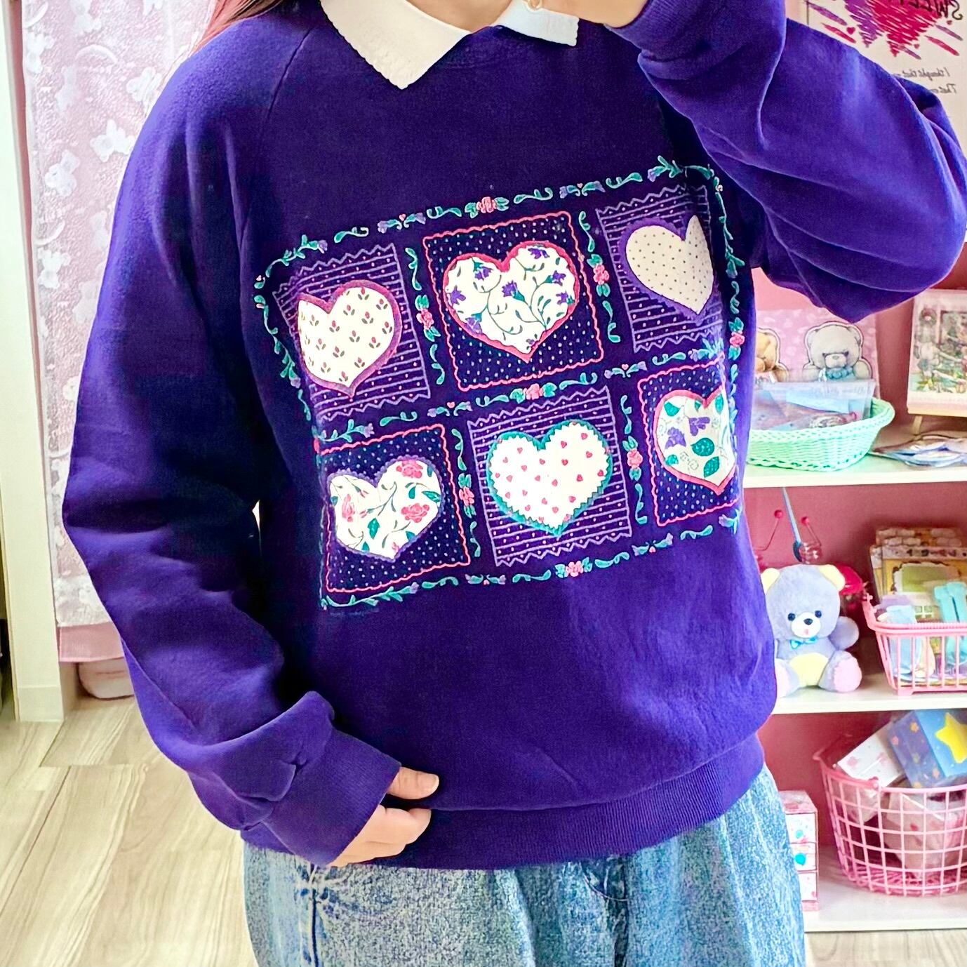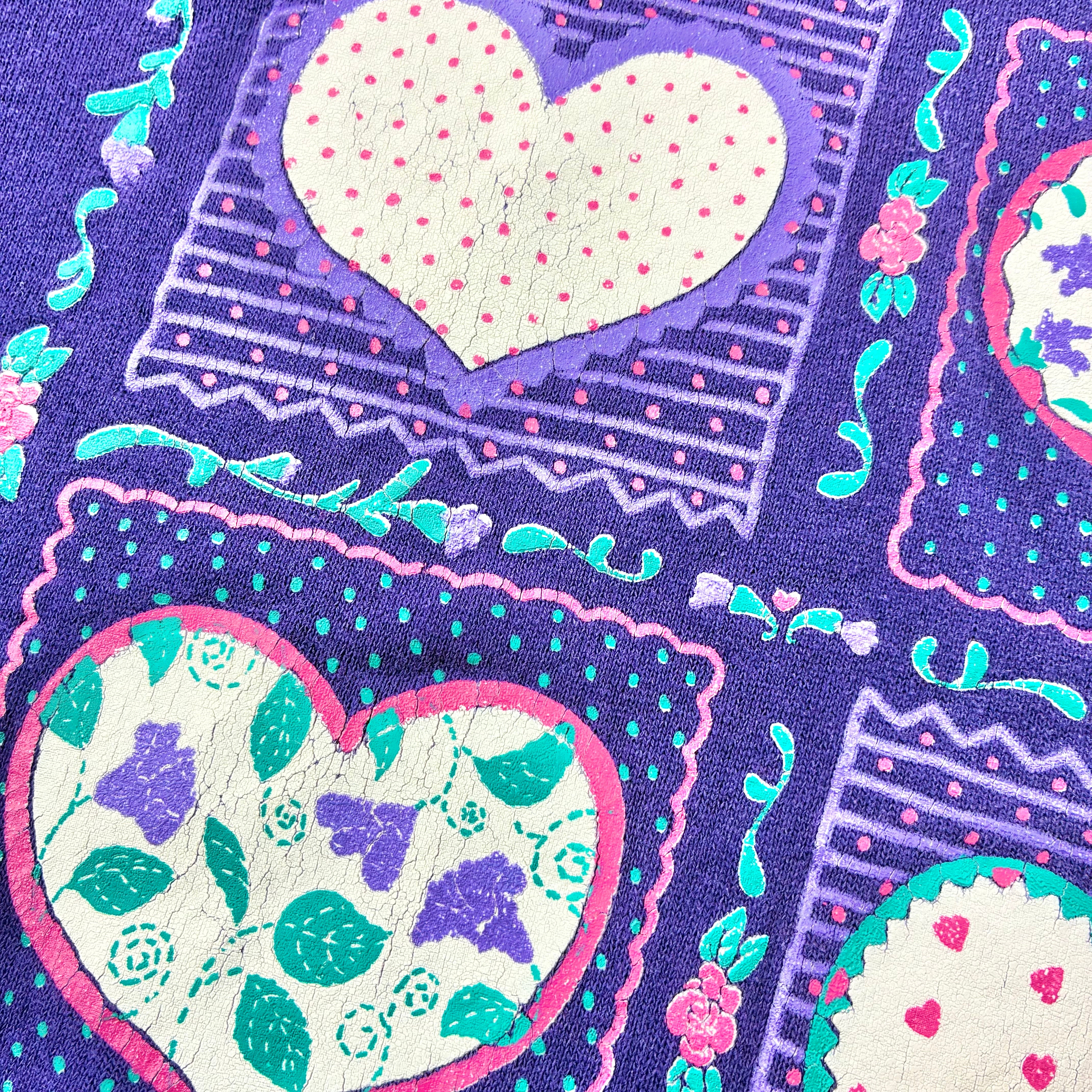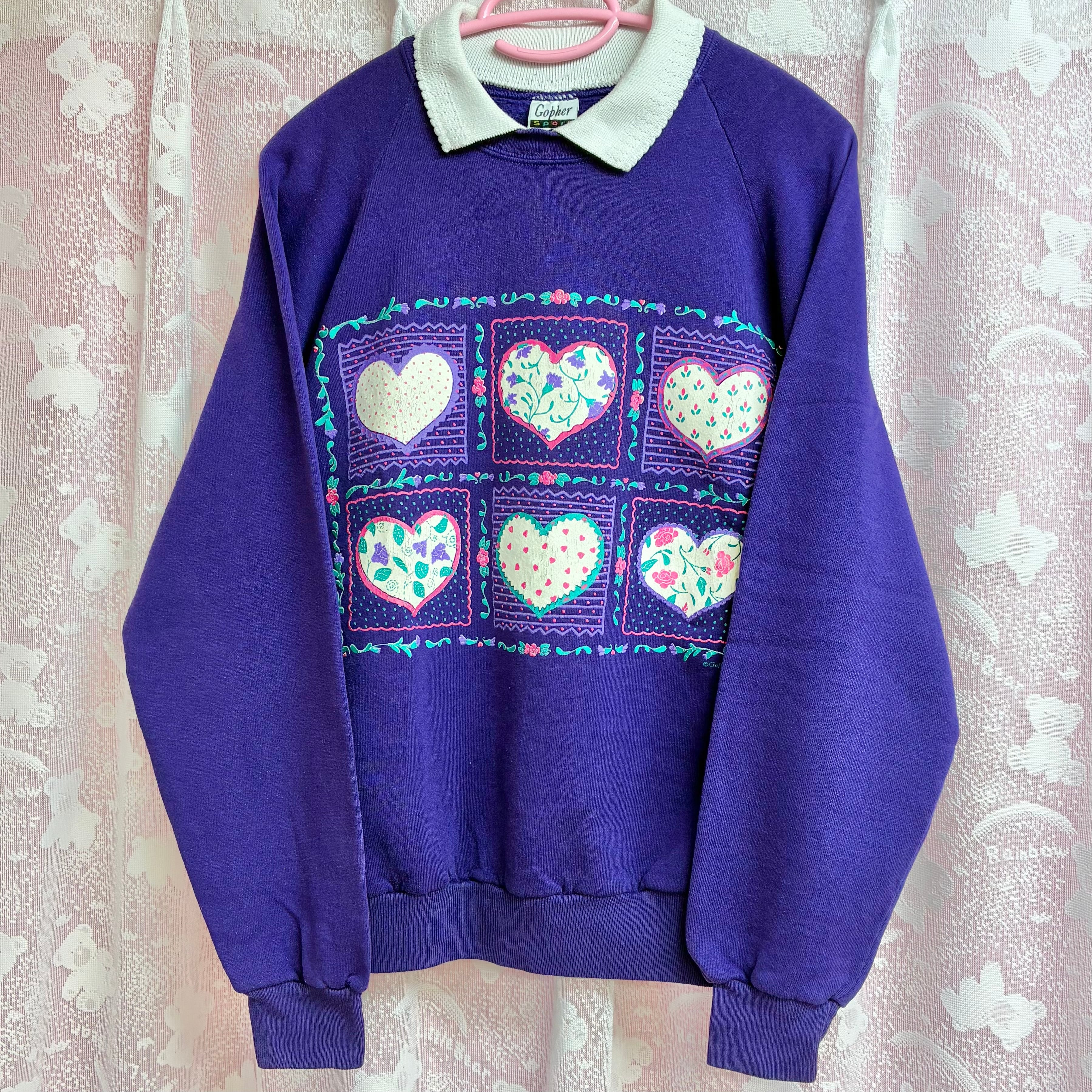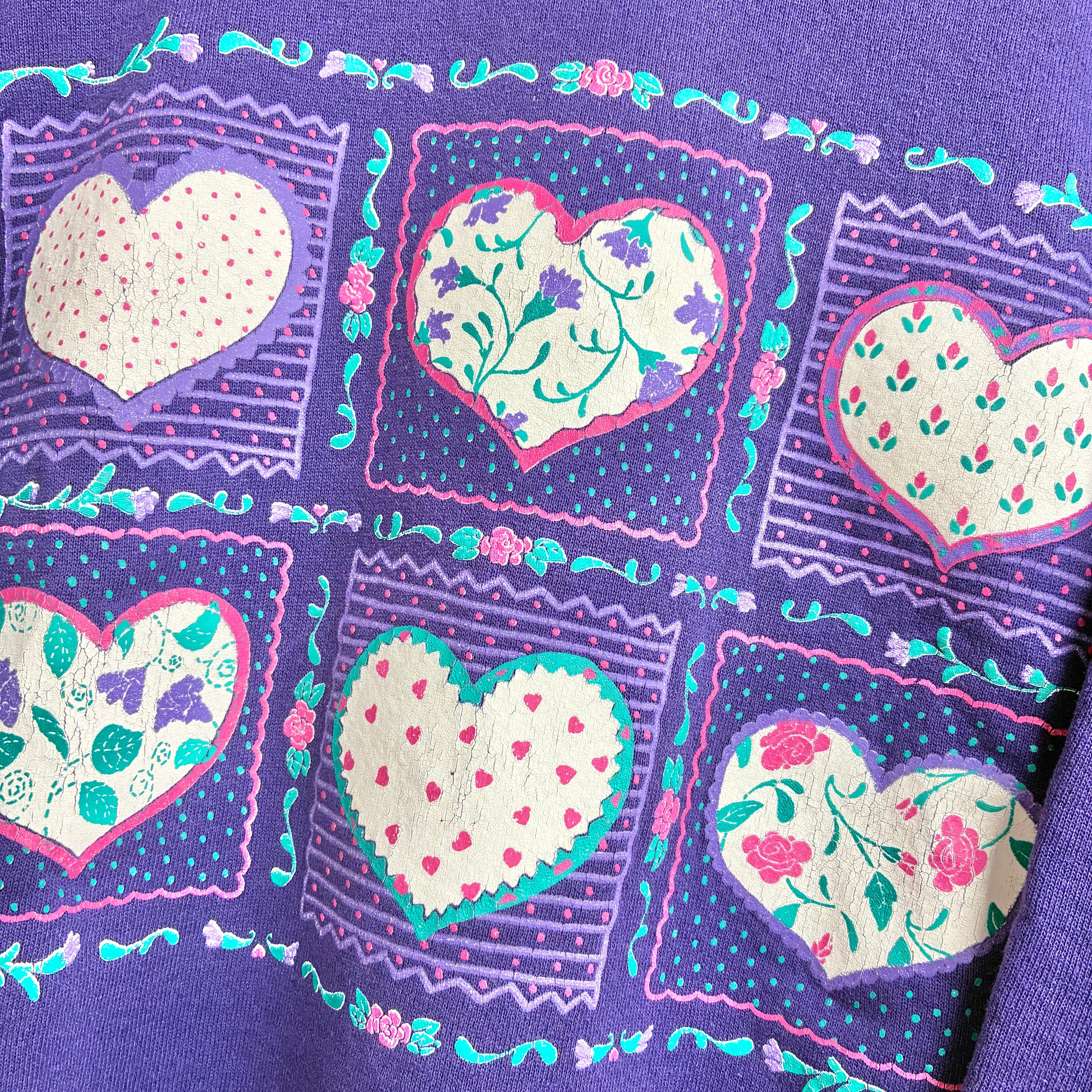 ドットや小花など色々な柄のハートプリントが可愛いヴィンテージスウェットです。