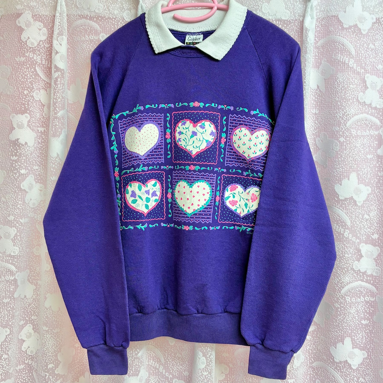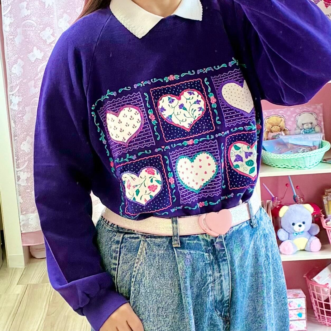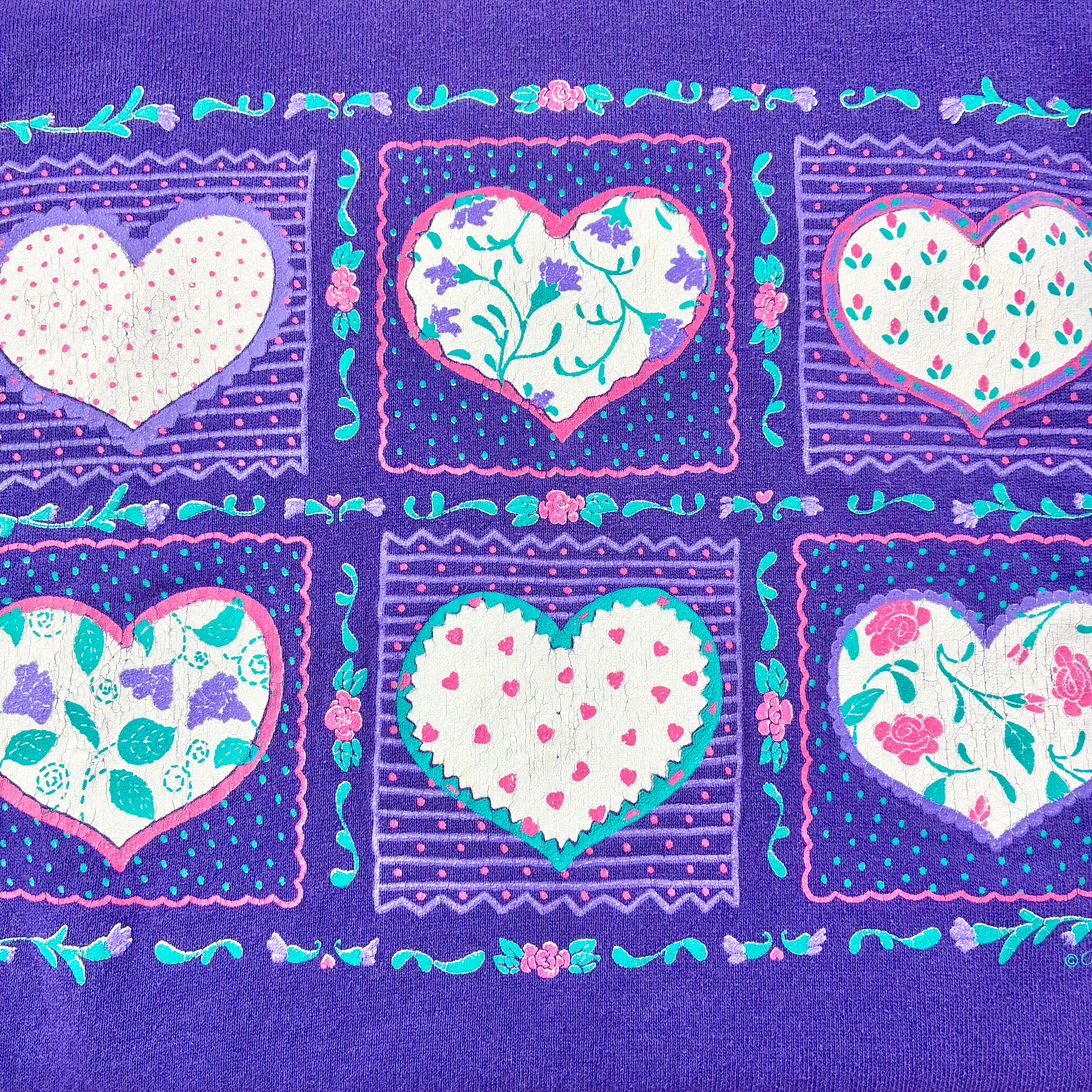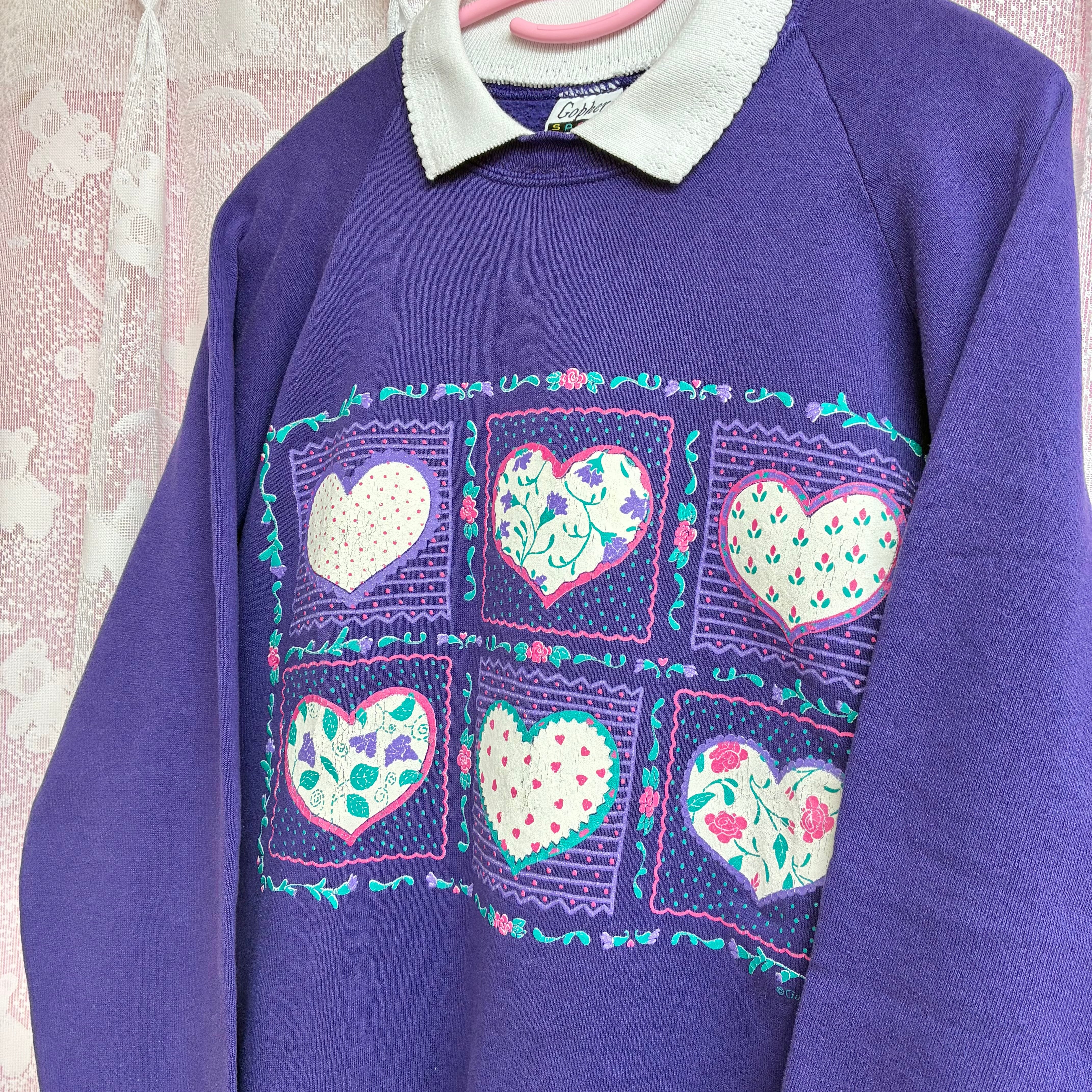 ドットや小花など色々な柄のハートプリントが可愛いヴィンテージスウェットです。